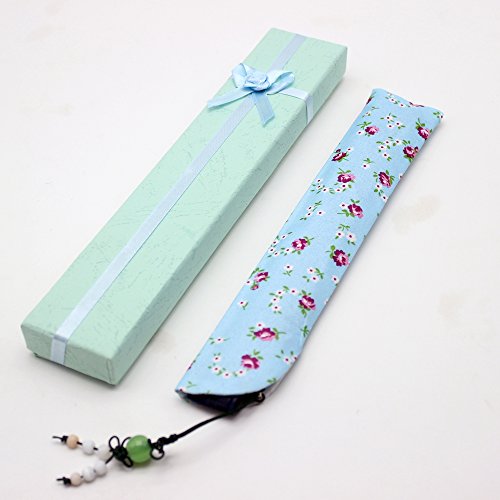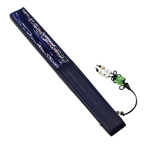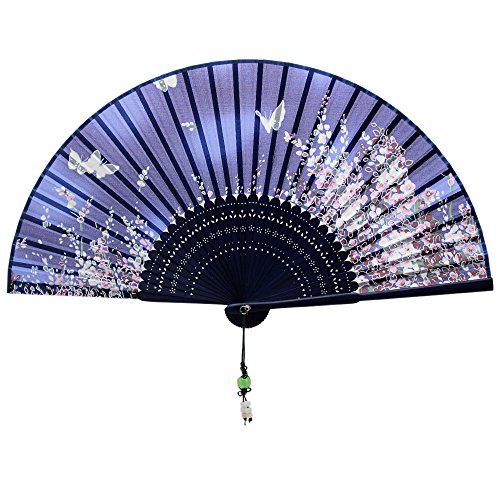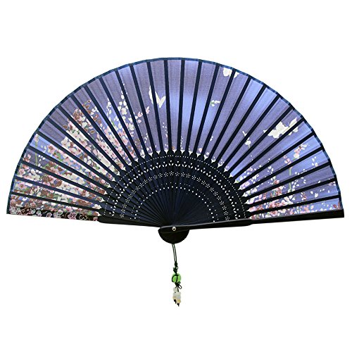 Alay&me Japanese Silk Handheld Fan Hand Fan Blue with Flower Butterfly Handheld Fan