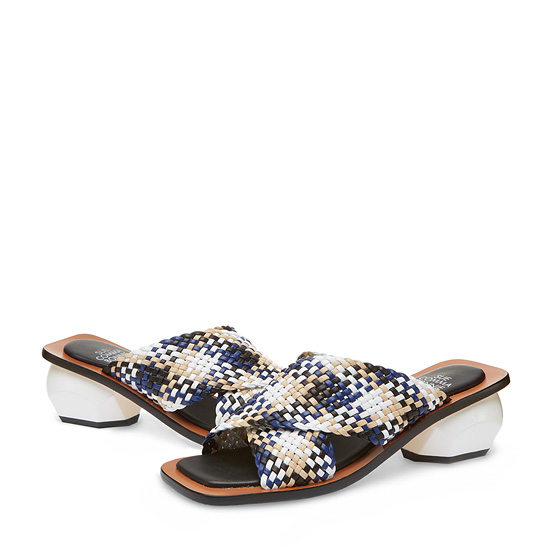- 감각적인 컬러웨이로 이루어진 슬라이드형 샌들.