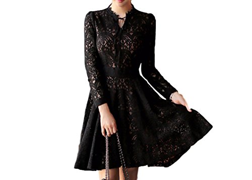-. Title : (エフィシェント) efficient 総レース ワンピース リボン 着やせ 美ライン 長袖 黒 デート フォーマル