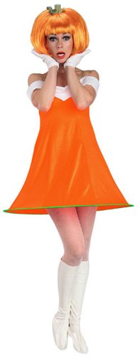 -. Feature : Pumpkin spice costume / Package contains wig, dress, and boot tops / Flirty without being too revealing / Look for coordinating accessories from Rubie's costume company / Rubies' collection represents more than six decades of bringing you quality products, innovation, and value for every costume occasion