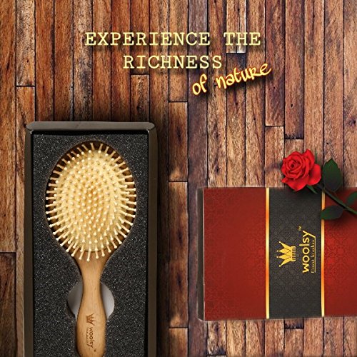 Woolsy 100% Pure OakWood Paddle Hair Brush ~ FINEST QUALITY ~ Improves Hair Growth, Prevent Hair Loss and DandDruff ~ Natural Detangling Brush...
