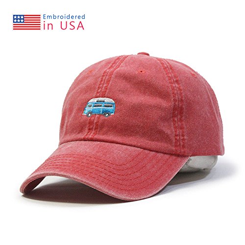 Title : Plain Washed Cotton Twill Baseball Cap with Adjustable Velcro (Various Colors) (Camper Red)