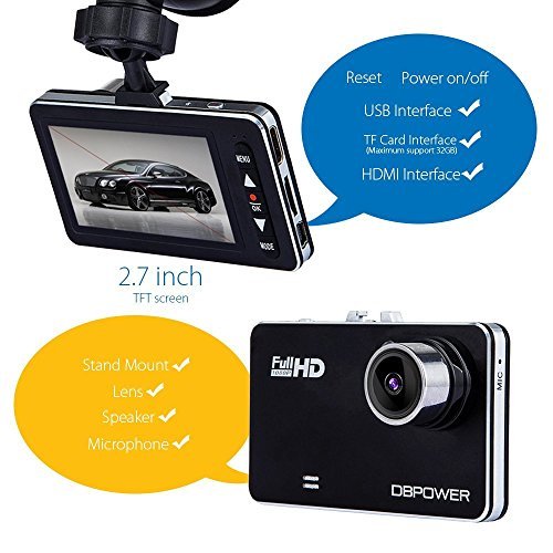 -. Title : DBPOWER 2.7" 1080P HD Dash Cam Car DVR Camcorder Vehicle Dashboard Camera Recorder with 120° Wide Angle 4X Zoom Lens G Sensor Night Vision Motion Detection Support up to 32GB TF-Card (Not Included)