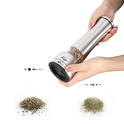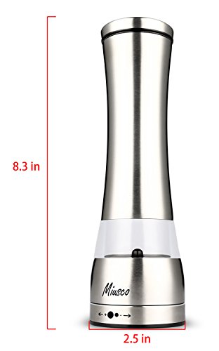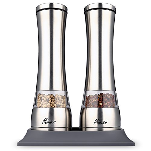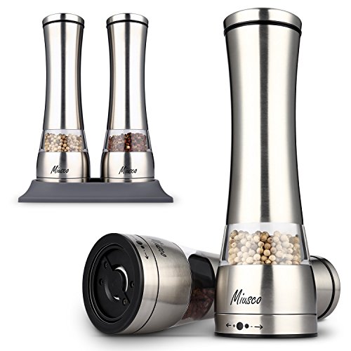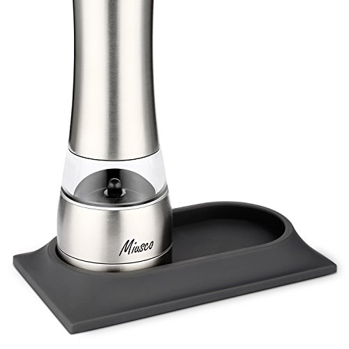 Miusco Salt and Pepper Grinder with Silicone Mat, Adjustable Ceramic Setting, Brushed Stainless Steel, Set of 2, Large Size