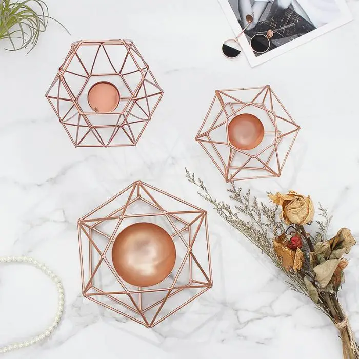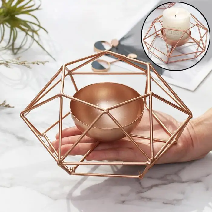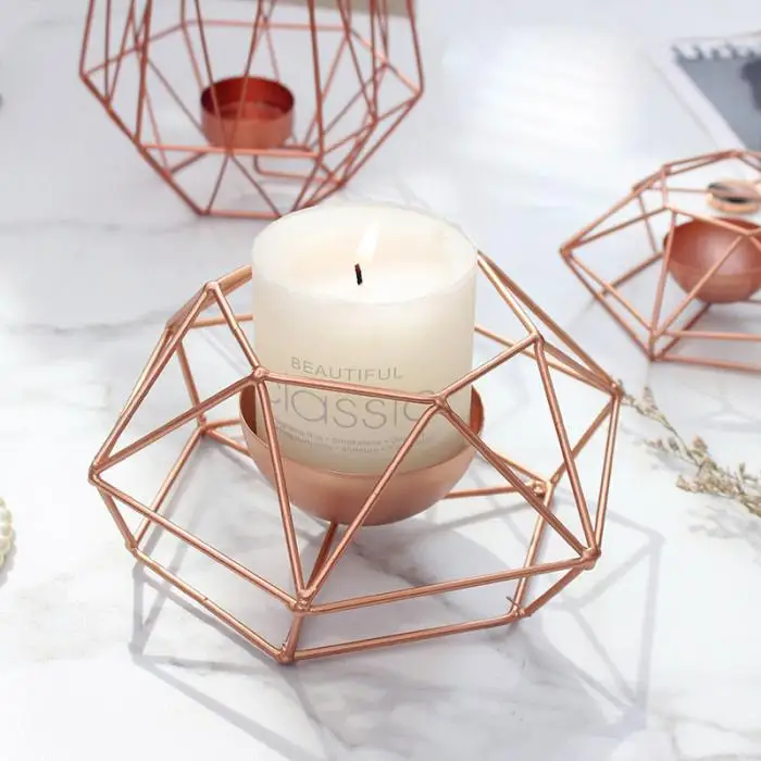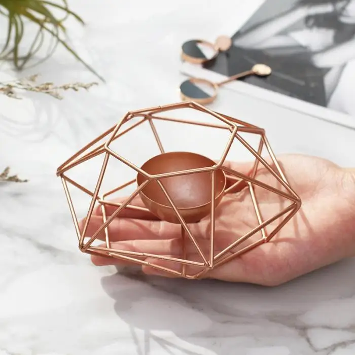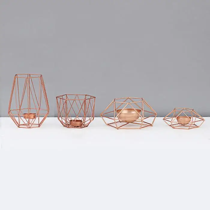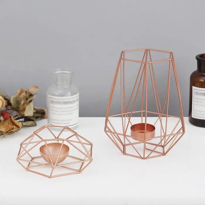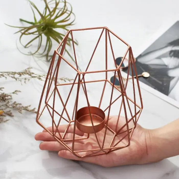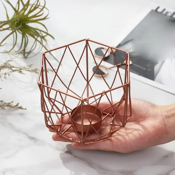 Vintange Iron Geometry Tealight Candle Holders Tabletop Craft Metal Wire Candlestick Home Decoration MYDING