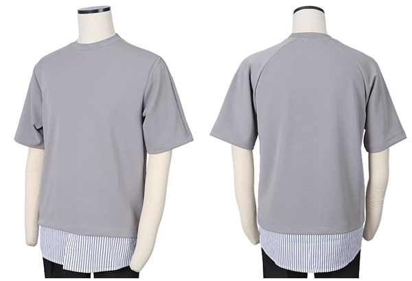 소프트한 그레이와 런던 스트라이프의 셔츠 레이어드 디테일로