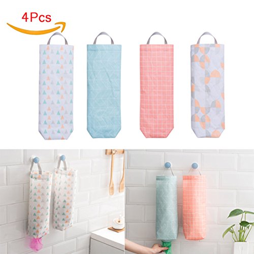 Set of 4 Plastic Bag Holder Waterproof Wall Mount Grocery Bag Dispenser Garbage Bag Organizer with Easy Access Top and Bottom Openings for Home Office Kitchen