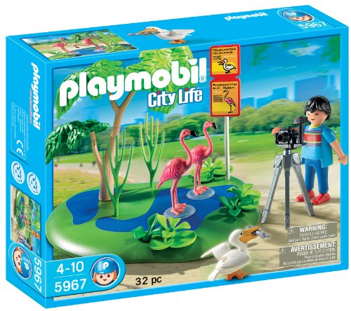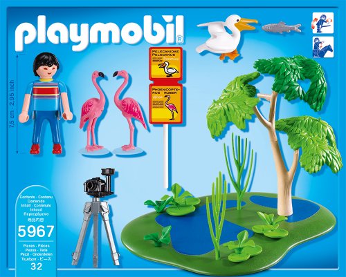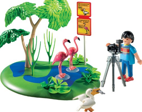 -. Feature : No trip to the zoo is complete without a photo of flamingos / Playmobil is the largest toy manufacturer in Germany / Figures can bend, sit, stand and turn their heads / Encourages children to explore and learn while having fun / Includes figure, 2 flamingos, camera with tripod, oasis landscape, pelican, and other accessories