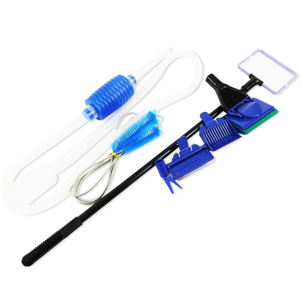 水槽掃除や水の入れ替えはこのセットにおまかせ! ①水替えポンプ:使い方はとっても簡単!長すぎず使い勝手よく、軽くて作業の負担が少ないホースです。全長:約1.4m ②ガラスクリーナー:水槽のガラス掃除に!ヘッドが5種(ゴミ取りネット、ブラシ、くま手、藻用ブラシ、水槽クランプ)付属した万能型。 ③パイプ用ブラシ:360°ブラシでパイプの中の汚れも除去します。