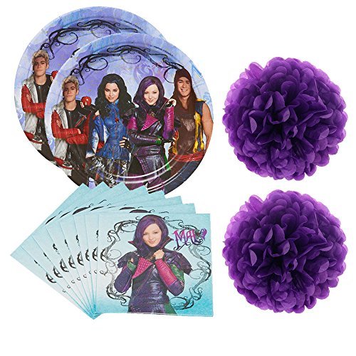 -. Title : Disney Descendants Party Supplies Pack for 16 guests - plates and napkins plus pom pom decorations