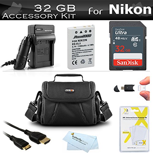 32GB Accessory Kit For Nikon COOLPIX P100 P500 P510 P520 P530 Digital Camera Includes 32GB High Speed SD Memory Card + Extended (1100 Mah) Replacement Nikon EN-EL5 Battery + AC/DC Charger + USB Card Reader + Case + Mini HDMI Cable + More