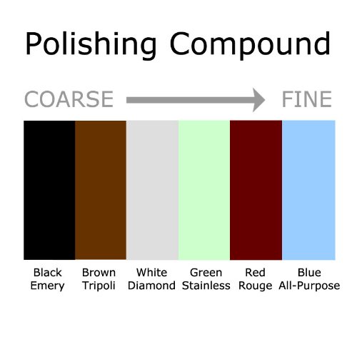 -. Feature : Easy-to-use jeweler's polish for bringing out best in each metal type / 1 oz bars of unique polishing compounds suspended in paraffin base / Choose from 6 colors - each with unique formulation (see description) / Black Emery, Brown Tripoli, White Diamond, Green Stainless, Red Rouge, Blue All-Purpose; all made in USA / Sold in individual bars by color - purchase one or multiple colors in any quantity. Weighs 1.1 oz each