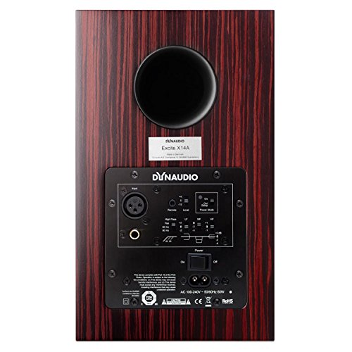 -. Feature : 2 - Dynaudio Excite X14A High-End Bookshelf Speaker (Walnut) / An excellent handmade active loudspeaker driven by a perfectly-matched 50W power amplifier and based on the award-winning Excite X14 passive model / The Excite 14A features three equalizer switches that allow fine-tuning the sonic performance even further, for example when placing the speaker near a wall, corner, or free-standing. The bass, midrange and treble can each be individually adjusted in three levels. / The rear panel of the Excite X14A features two analogue inputs to choose from, one RCA and one XLR. The input sensitivity can be individually adjusted in three levels. / Dimensions (W x H x D): 6.7 x 11.1 x 9.7/10.3"; Weight: 32 pounds; Manufacturer's warranty: 5 years
