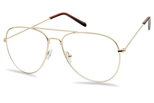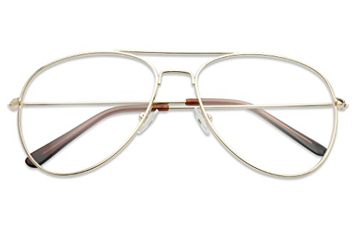 SunglassUP Oversize Round Double Bar Clear Lens Metal Aviator Plastic Cross Bar Glasses