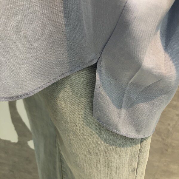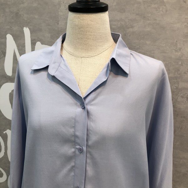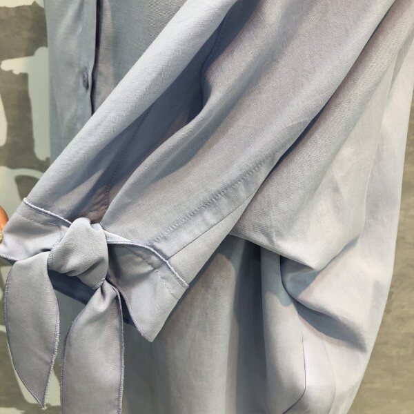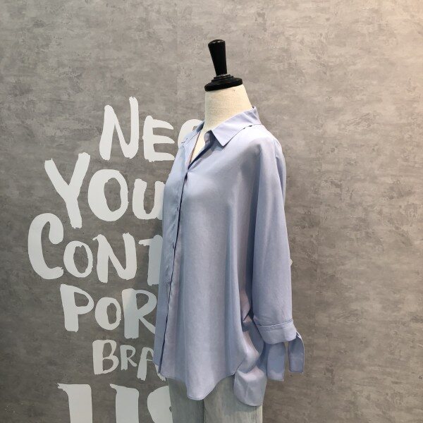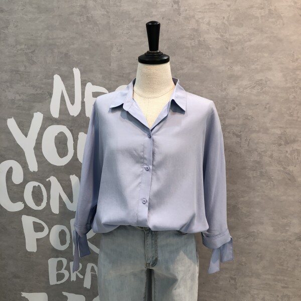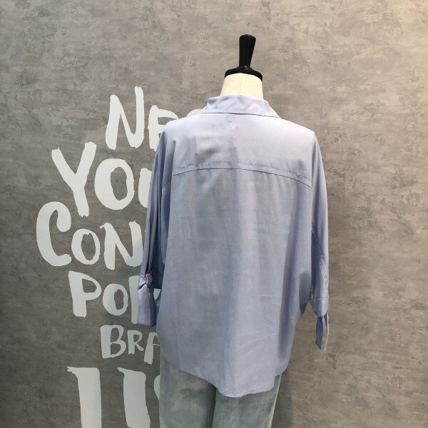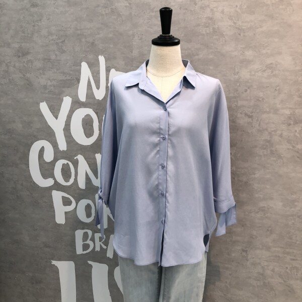 심플하고 베이직한 느낌의 깔끔한 블라우스 셔츠로 어깨선부터 자연스럽게 떨어지는 루즈핏이 멋스러우며 소매리본과 트임이 포인트되어 고급스러운 디자인의 아이템입니다