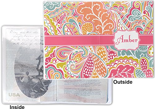 This cover is made of a sturdy clear vinyl with a personalized vinyl insert inside. There is a large and a small pocket on either side to hold the covers of your passport easily and firmly. The passport holder is approximately 5.25" x 7.5", the perfect size to snugly fit your passport. This slim cover is the perfect way to protect your passport without being one more bulky item you have to carry.