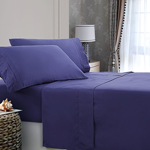 DreamHome Embroidered Deep Pocket Microfiber 4 Piece Sheet Set (King Size, Navy)