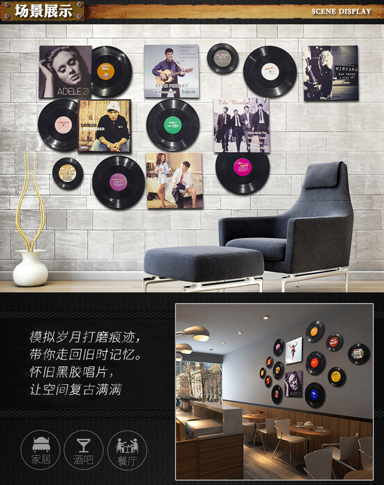 创意复古唱片工业风墙上餐厅酒吧墙壁墙面装饰品咖啡店背景墙挂件