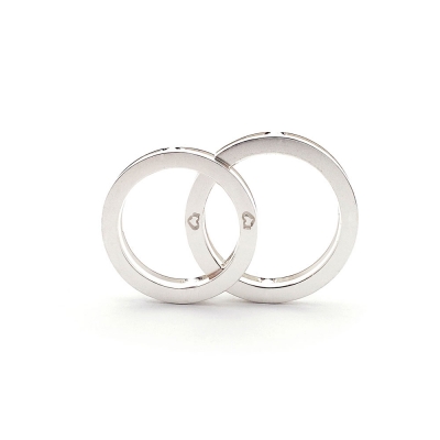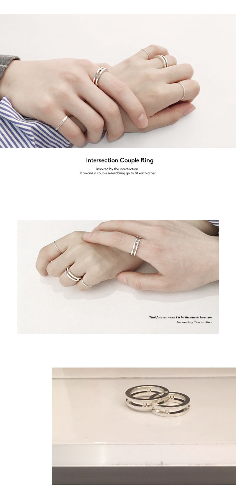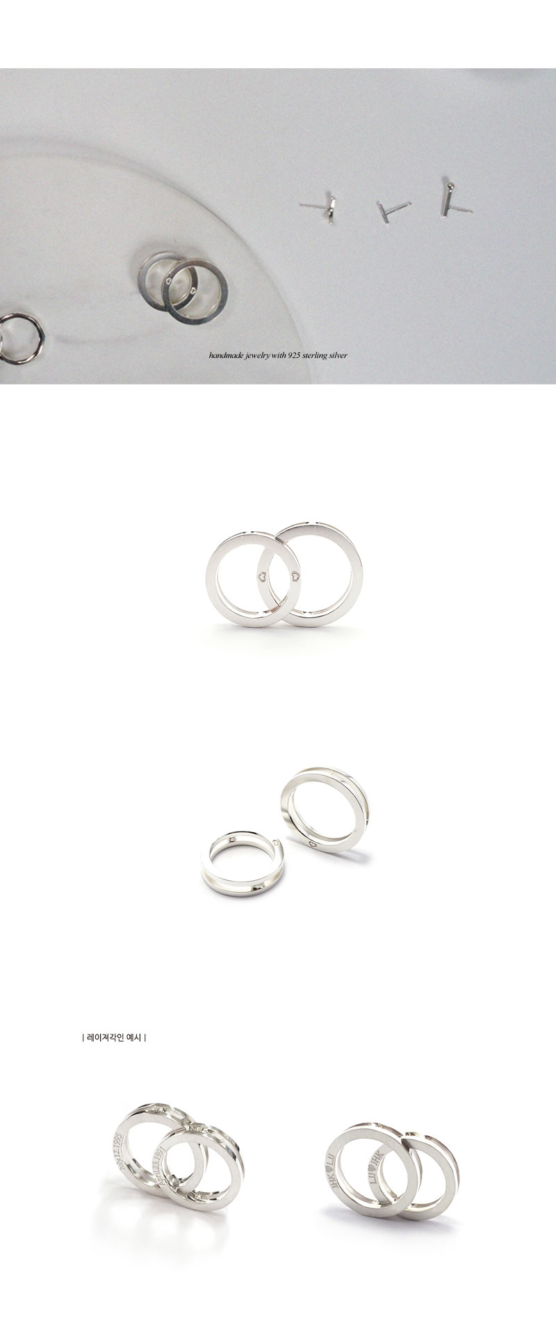| 두 반지가 만나 겹쳐지면서 교집합이 이루어지는 커플링입니다. 각자 다른 삶을 살아왔지만 함께 만나 서로를 닮아가는 모습과 두 사람의 믿음을 함축적으로 표현하고자한 디자인입니다. 강한 두 라인이 매력적인 반지로, 착용시 미니멀하고 모던한 느낌으로 연출됩니다. 두툼한 두께감으로 더욱 멋스러움이 느껴지는 반지입니다. 특별하면서도 예쁜 커플링을 원하시는 분들께 추천해드립니다. !레이져각인은 선택사항이며, 라인하트의 하트로고가 새겨져있는 옆면 뒷편에 새겨집니다. 레이져각인 문구는 너무 긴 문장만 아니면 가능합니다. 폰트는 예시에 나온 기본폰트로 제작되며, 모든 특수문자, 영어 대문자 · 소문자, 한글도 가능합니다. 주문시 문구입력란에 작성해주시면 됩니다. |info.| · material:925 sterling silver · height:5.5mm · thickness:2.6mm |
