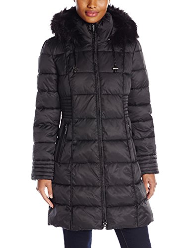 Box-quilt coat featuring smaller channel quilting at side panels and cuffs