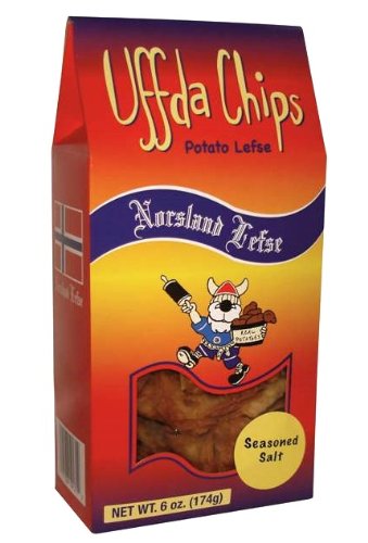 -. Binding : Grocery -. Brand : Norsland Lefse -. Feature : Norsland Lefse's little chip with big flavor / The full-bodied goodness of our lefse deep fried / Snackdillyicious / Perfect gift for the Lefse Lover -. PackageQuantity : 1 -. ProductGroup : Grocery -. ProductTypeName : GROCERY -. Title : Uffda Chips - Made From Real Lefse - 6 oz. By Norsland Lefse