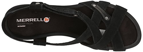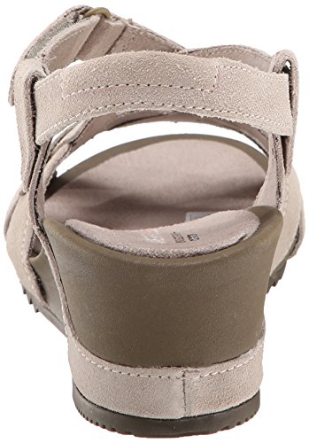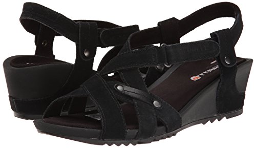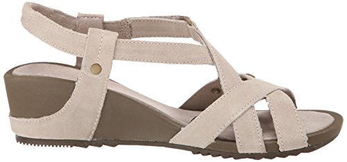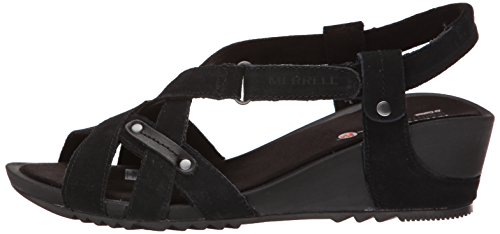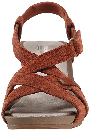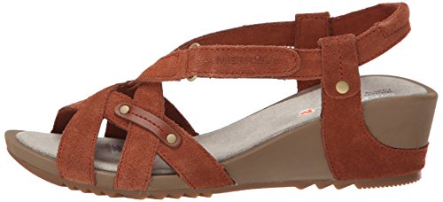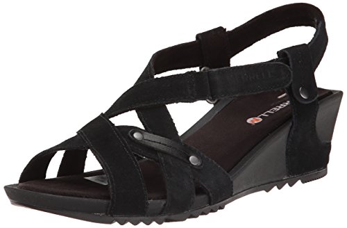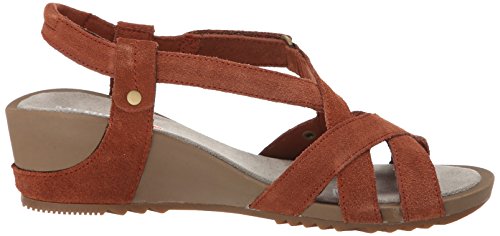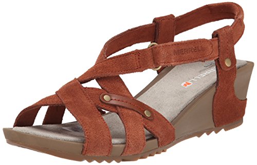 Open-toe sandal featuring wedge heel overlaid with suede straps with antiqued studs and hardware