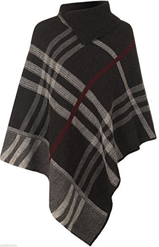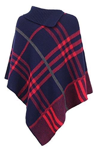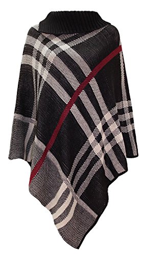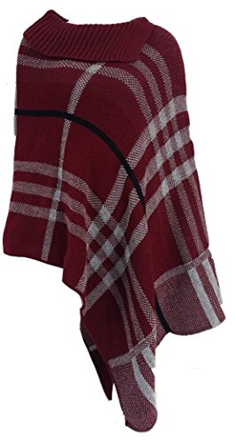-. Title : Women's Checked Knitted Winter Poncho Red Band Wrap Shawl Cape