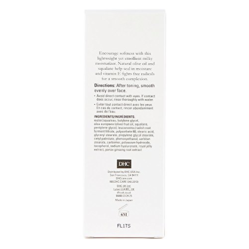 DHC rich moisture creamy, lightweight face moisturizer works with your skin to promote softness and encourage hydration for a natural glow. Features a host of beneficial botanicals, including moisturizing olive oil, emollient squalane, soothing ginseng and nourishing royal jelly extract. Helps skin stay supple and look younger.Feature