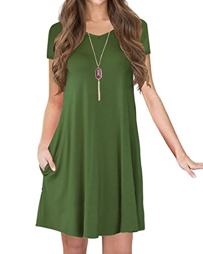 Jouica Womens Casual Short Sleeve Pleated Swing Loose V-Neck Dress Lightweight, soft and stretchy Unique style,make you beautiful,fashionable,sexy and elegant.