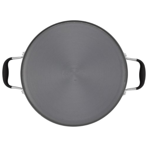 • Oven safe to 400 degrees Fahrenheit; features comfortable, rubberized stainless steel Anolon SureGrip handles and a shatter-resistant glass lid