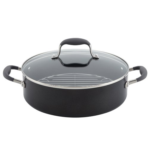ANOLON ADVANCED HARD ANODIZED NONSTICK 5-1/2-QUART COVERED BRAISER WITH RACK. GRAY