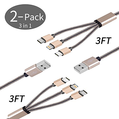 -. Title : BEAUTME 2 Pack 3 In 1 Charger Cable 3ft Super Speed Multiple 3A USB Charging Cable Cord with Lightning/USB Type C/Micro USB Connectors Ports (Gold) (not transfer date cable)