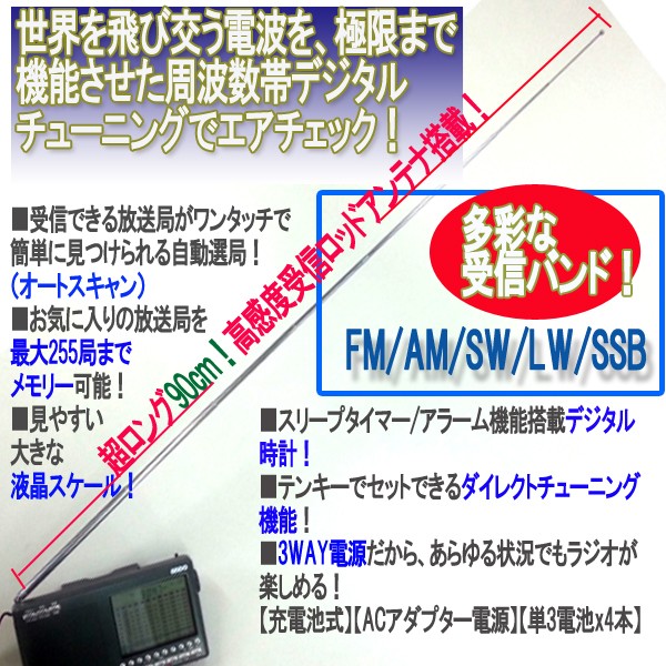 ■超ロング90cm!高感度受信ロッドアンテナ搭載!