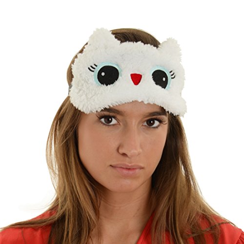 -. Feature : Womens sleep eye mask - Travel sleep aid / Elastic back strap - Soft fleece - Reversible / One Size - Front side wide eye cat face with ears / Back side - black and white fleece snowflake print / 100% Polyester - Fun Gift Item!