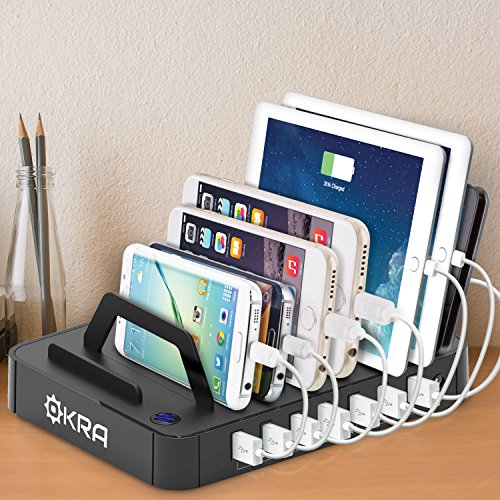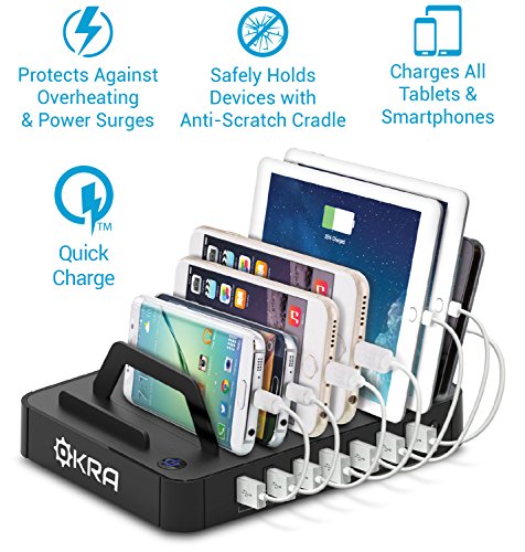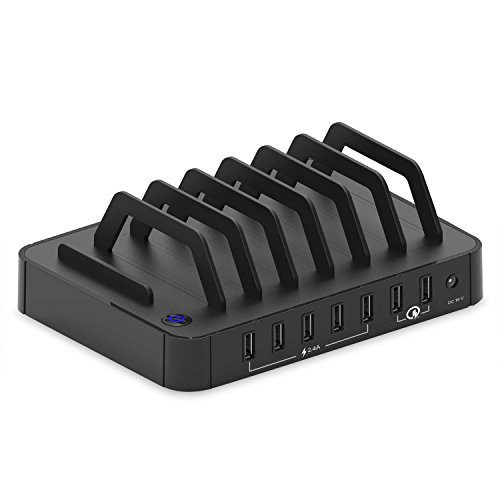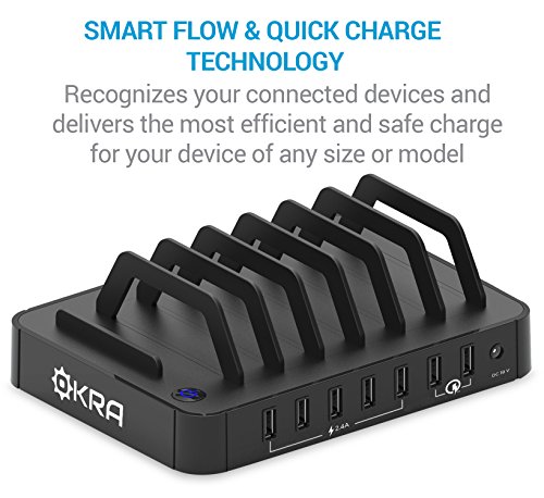 Okra 7-Port USB Charging Station [Quick Charge 2.0] Universal Desktop Tablet & Smartphone Multi-Device Hub Charging Dock for iPhone, iPad, Galaxy, Tablets (Black)