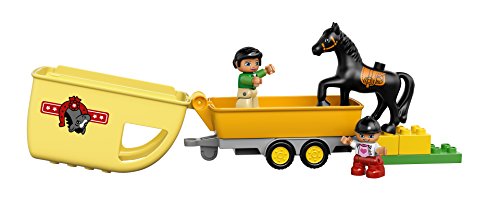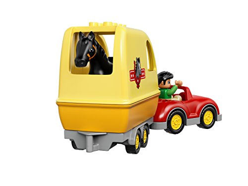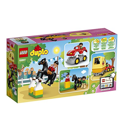-. Binding : Toy -. Brand : L.E.G.O -. EAN : 0673419250696 -. Feature : Features a buildable car and horse trailer with opening top as well as a practice jump with a bar that can be knocked off / Lead the horse into the trailer and make sure the top is securely closed before driving off / Use the jump to help your child learn about practicing, then make it higher using the extra bricks / Horse Trailer measures over 5" (14cm) high, 6" (17cm) long and 3" (8cm) wide, car measures over 2" (6cm) high, 5" (15cm) long and 2" (7cm) wide / L.E.G.O DUPLO products are specially designed to be fun and easy for little hands -. IsAdultProduct : 0 -. Label : DUPLO -. Manufacturer : DUPLO -. Model : 6137995 -. MPN : 6137995 -. PackageQuantity : 1 -. PartNumber : 6137995 -. ProductGroup : Toy -. ProductTypeName : TOYS_AND_GAMES -. Publisher : DUPLO -. ReleaseDate : 2016-01-01 -. Studio : DUPLO -. Title : L.E.G.O DUPLO Horse Trailer 10807 -. UPC : 673419250696 -. Warranty : No Warranty