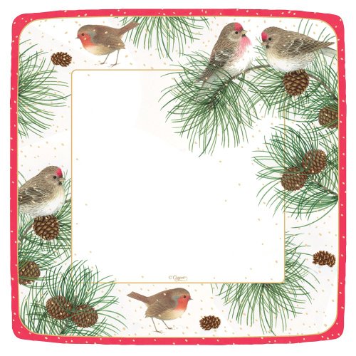 Entertaining with Caspari Entertaining Square Dinner Plates, Woodland Birds, Pack of 8