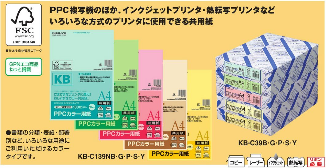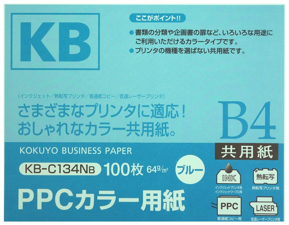 B4 100 pieces of KB-C134NB Kokuyo PPC color paper both FSC-certified paper blue (japan import)
