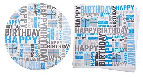 Neviti Party Pack: Happy Birthday Blue Plates (8 Pack) and Napkins (20 Pack)