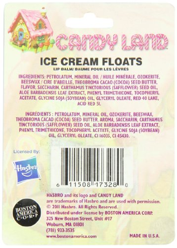 -. Binding : Toy -. Brand : Boston America -. ClothingSize : One Size -. EAN : 0611508173280 -. Feature : .15 Oz Tube / Great For Kids! / Great For Adults! / Great For Parties! -. Label : Getting Fit -. Manufacturer : Getting Fit -. Model : 611508173280 -. MPN : 611508173280 -. PackageQuantity : 1 -. PartNumber : 611508173280 -. ProductGroup : Toy -. ProductTypeName : TOYS_AND_GAMES -. Publisher : Getting Fit -. Size : One Size -. Studio : Getting Fit -. Title : Boston America Candy Land Ice Cream Floats Lip Balm -. UPC : 611508173280 -. Warranty : No Warranty