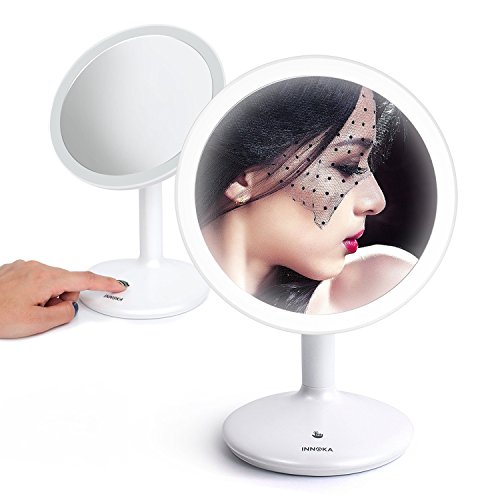 INNOKA Makeup Mirror LED Adjustable Light Vanity Mirror 90 Degree Swivel Rotation, USB Rechargeable, Stain Resistant, Cosmetic Mirror for Countertop...