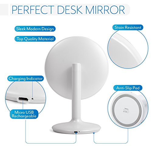 PERFECT FOR ANYWHERE: Cordless design and lightweight nature makes the mirror incredibly portable, great for travelling! Non-slip pad will allow the mirror to sit on your makeup desk comfortably and securely. Put the mirror into your bag and take the mirror to and from your office