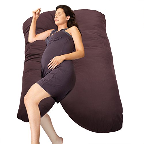 Mothers-to-be can appreciate the comfort of this coffee colored pregnancy support pillow.