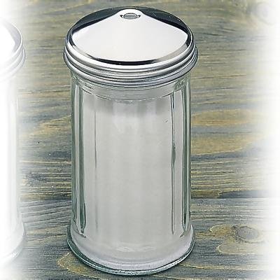 Product Description TABLECRAFT SUGAR POURER W/CENTER POUR TOP - 12 OZ (55S-1).Tablecraft. Fluted glass. Stainless steel top. Center pour top. Capacity: 12 oz. 0