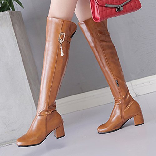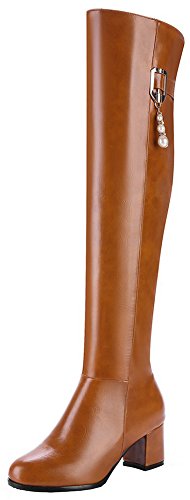 Binding : Apparel Product Description The pair of right shoes can make all the difference. The boots season comes. A pair of long boots is a must-have for a lady who want to be impressed in the crowed. If you're trying to get boots that will send a message with your every step, there's no finer footwear to add glamour close to you than these tall boots from Mofri. These boots don't whisper; they scream with their distinctive and trendy design. This pair of boots make you stand out in any crowd and are sure to heat things up no matter what you wear with them. The block heels raise your height and giving the shoes a chunky shape that is reflection of the latest trends. These shoes from Mofri is made from top quality vegan synthetic leather. Leave those boring basic boots behind. Make this pair boots as your fashion secret weapon and you'll be able to have some sexy appeal which will be the soul of your everyday ensembles. Order a pair in your favorite color! Can't decide? Why not get more? You'll still pay less than the price you would for a single designer pair elsewhere. We will make you always be on the cutting edge of women' s fashion. Mofri is a legal trademark which has registered in United Stated Patent Trademark Office. All right reserved. 0