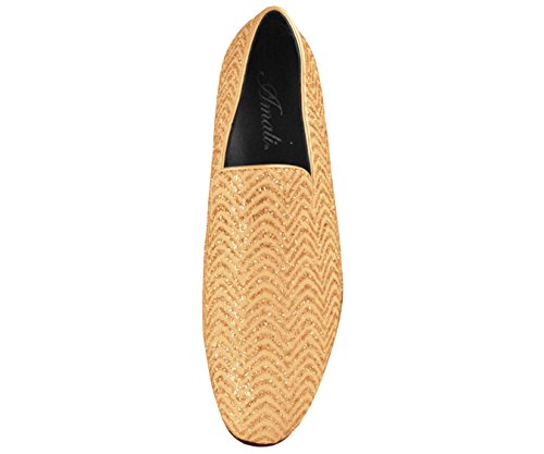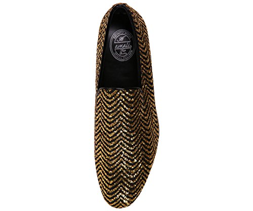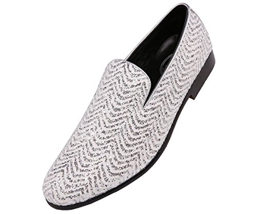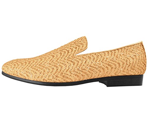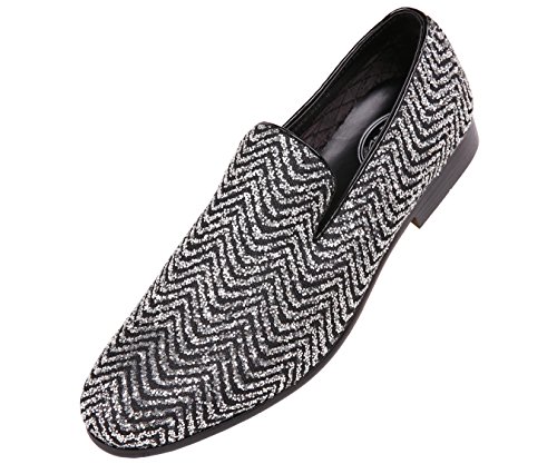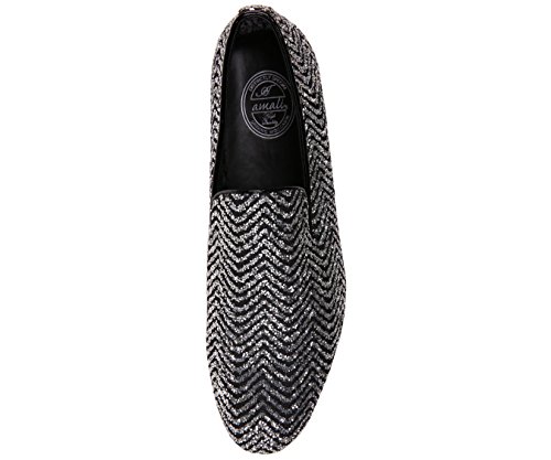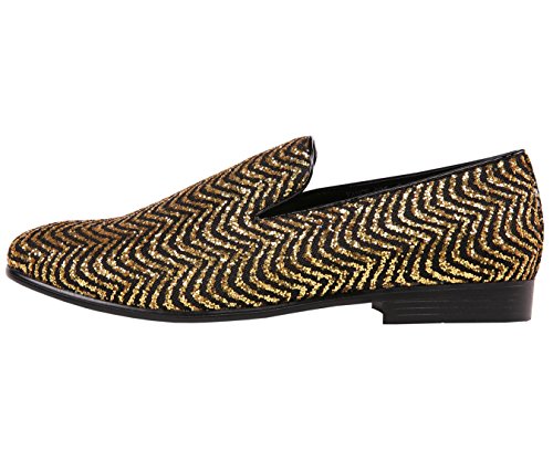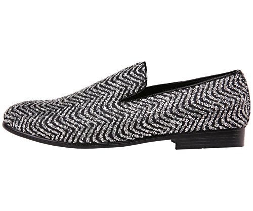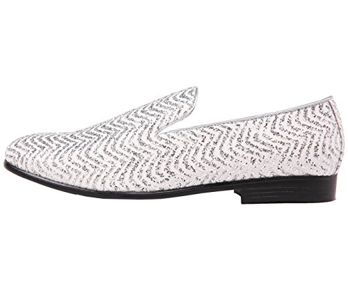 Binding : Apparel Product Description All eyes on you: These two tone glitter-encrusted tuxedo slippers are the ultimate statement-making dress shoe. Whether it's for the holidays, a special occasion such as prom, or simply for a night out, these eye-catching shoes are essential for elevating your entire outfit. The classic smoking slipper silhouette is adorned with a striking zig zag glitter design, giving this timeless look a bold update. Choose from a dazzling array of color combinations, including black/gold, black/silver, and white/silver to easily coordinate with any look and fit any dress occasion. A low block heel and manmade materials make these loafers comfortable to wear and easy to slip on. Take your look to the next level and add some major star power to your next night out on the town with these high-shine shoes. 0
