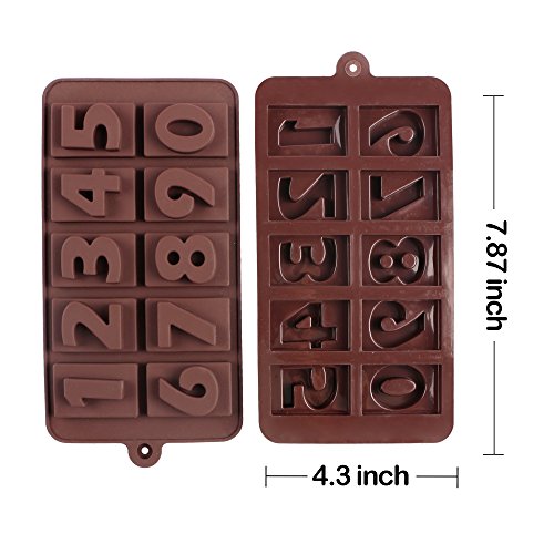 Webake 2 Pack Silicone Number Chocolate Molds 0-10 Candy Mould for Birthday Cake Decorations Cupcake Topper