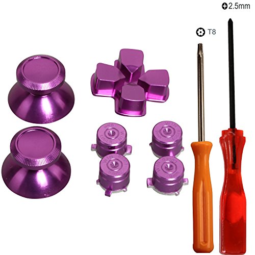 eJiasu Metal Aluminum Bullet Buttons + Cross Key ABXY Buttons+ Thumbsticks Thumb Grip Chrome D-pad Button Set for PS4 DualShock 4 Controller(One Set Button Purple)