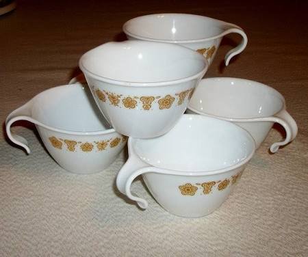 -. Title : Set of 6 Vintage Corelle Golden Butterfly Tea Cups
