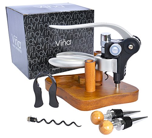 Product Introduction: ? Wine gift ideas for a Wedding reception, Housewarming present, Anniversary celebration, Garden party ? 5pcs of Wine Set includes: Corkscrews wine bottle opener, 2 wine Stoppers, Foil cutter, spiral replacement corkscrews ? Each piece of this set is fully able to handle anything you throw at it with ease. ? Design: Hold all your wine opener tools in an elegant wood stand, this lovely set can be stored nearly anywhere as its compact design. Size: 8(L) x 5.5(W) x 5(H) inches ? Perfect Christmas Thanksgiving Wedding Festival Father's Day Gift, Grandpa Father's day gifts from daughter son wife kids
